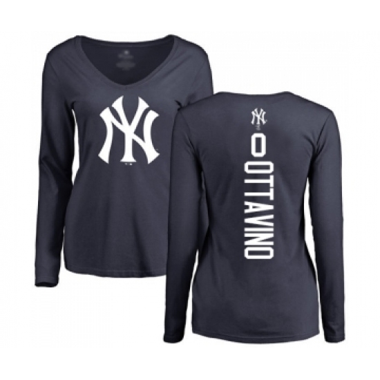 >Baseball Women's New York Yankees #0 Adam Ottavino Navy Blue Backer Long Sleeve T-Shirt