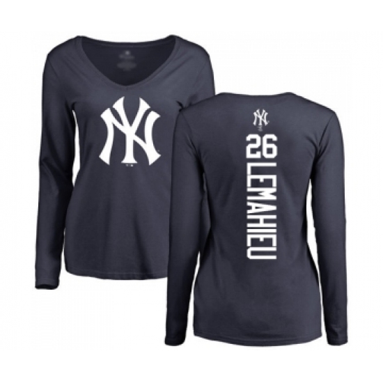 >Baseball Women's New York Yankees #26 DJ LeMahieu Navy Blue Backer Long Sleeve T-Shirt