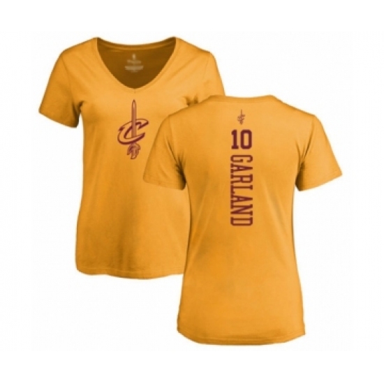 >Basketball Women's Cleveland Cavaliers #10 Darius Garland Gold One Color Backer Slim-Fit V-Neck T-Shirt