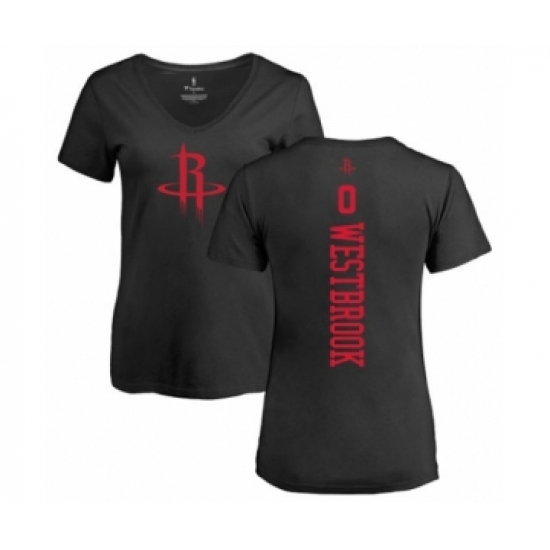 >Basketball Women's Houston Rockets #0 Russell Westbrook Black One Color Backer Slim-Fit V-Neck T-Shirt