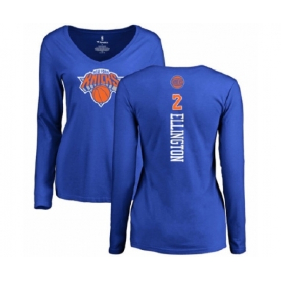 Basketball Women's New York Knicks #2 Wayne Ellington Royal Blue Backer Long Sleeve T-Shirt