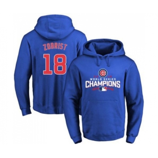 >Cubs #18 Ben Zobrist Blue 2016 World Series Champions Pullover MLB Hoodie