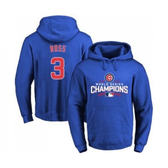 >Cubs #3 David Ross Blue 2016 World Series Champions Pullover MLB Hoodie