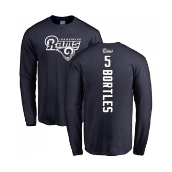 >Football Los Angeles Rams #5 Blake Bortles Navy Blue Backer Long Sleeve T-Shirt