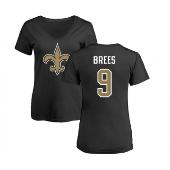>Football Women's New Orleans Saints #9 Drew Brees Black Name & Number Logo Slim Fit T-Shirt