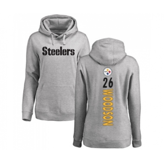 Football Women's Pittsburgh Steelers #26 Rod Woodson Ash Backer Pullover Hoodie