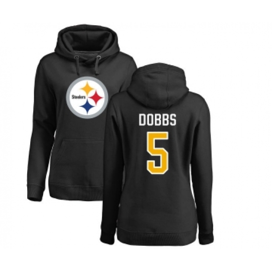 >Football Women's Pittsburgh Steelers #5 Joshua Dobbs Black Name & Number Logo Pullover Hoodie