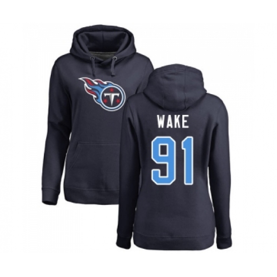 Football Women's Tennessee Titans #91 Cameron Wake Navy Blue Name & Number Logo Pullover Hoodie