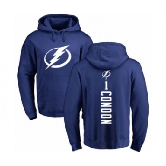 Hockey Tampa Bay Lightning #1 Mike Condon Royal Blue Backer Pullover Hoodie