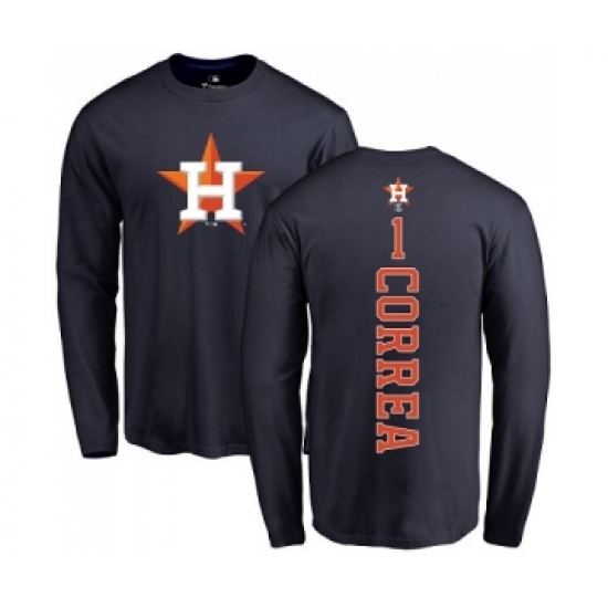 >MLB Nike Houston Astros #1 Carlos Correa Navy Blue Backer Long Sleeve T-Shirt