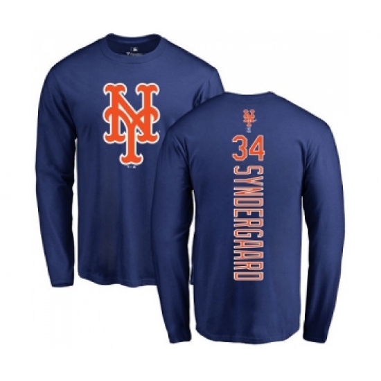 MLB Nike New York Mets #34 Noah Syndergaard Royal Blue Backer Long Sleeve T-Shirt