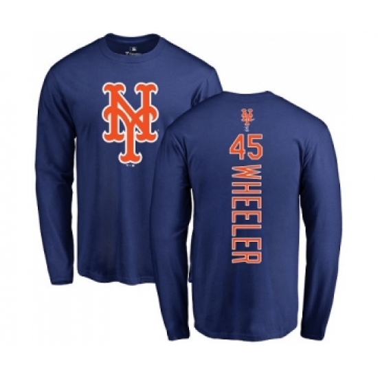 MLB Nike New York Mets #45 Zack Wheeler Royal Blue Backer Long Sleeve T-Shirt