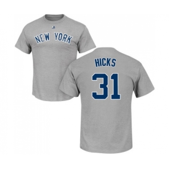 MLB Nike New York Yankees #31 Aaron Hicks Gray Name & Number T-Shirt
