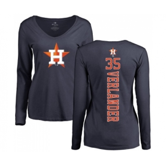 >MLB Women's Nike Houston Astros #35 Justin Verlander Navy Blue Backer Long Sleeve T-Shirt