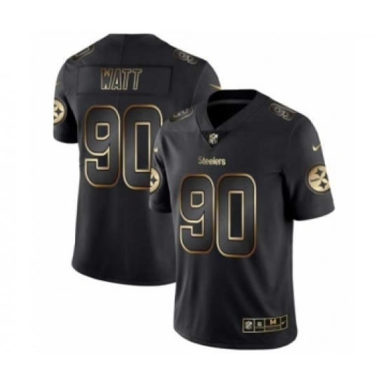 Men Pittsburgh Steelers #90 T.J. Watt Black Golden Edition 2019 Vapor Untouchable Limited Jersey