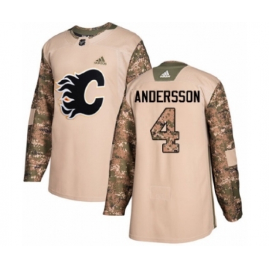 >Men's Adidas Calgary Flames #4 Rasmus Andersson Authentic Camo Veterans Day Practice NHL Jersey