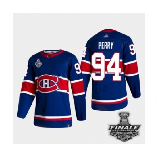 >Men's Adidas Canadiens #94 Corey Perry Blue Road Authentic 2021 Stanley Cup Jersey