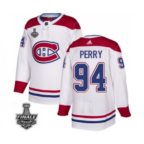 Men's Adidas Canadiens #94 Corey Perry White Road Authentic 2021 Stanley Cup Jersey