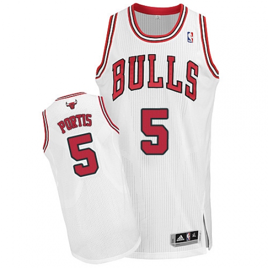 Men's Adidas Chicago Bulls #5 Bobby Portis Authentic White Home NBA Jersey