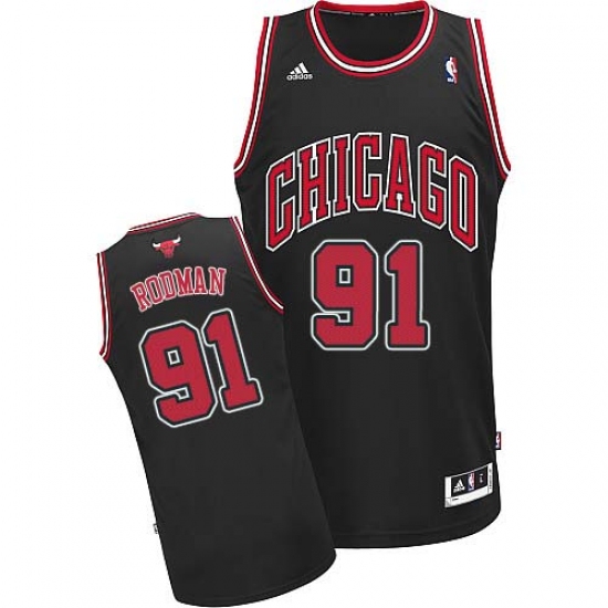 Men's Adidas Chicago Bulls #91 Dennis Rodman Swingman Black Alternate NBA Jersey