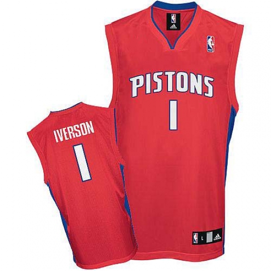 Home>NBA>Detroit Pistons>Allen Iverson>Men's Adidas Detroit Pistons #1 Allen Iverson Authentic Red NBA Jersey