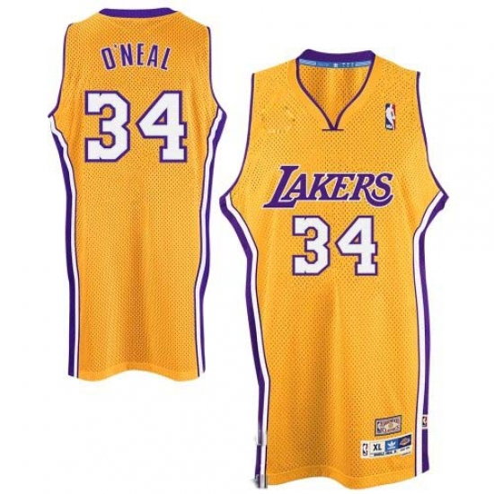 Home>NBA>Los Angeles Lakers>Shaquille O'Neal>Men's Adidas Los Angeles Lakers #34 Shaquille O'Neal Authentic Gold Throwback NBA Jersey