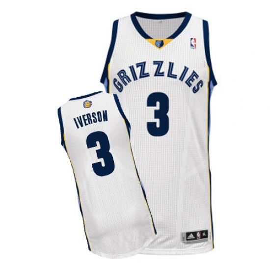 Men's Adidas Memphis Grizzlies #3 Allen Iverson Authentic White Home NBA Jersey