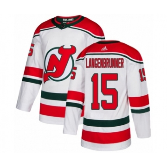 Men's Adidas New Jersey Devils #15 Jamie Langenbrunner Authentic White Alternate NHL Jersey