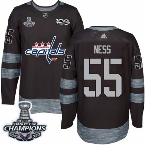 >Men's Adidas Washington Capitals #55 Aaron Ness Authentic Black 1917-2017 100th Anniversary 2018 Stanley Cup Final Champions NHL Jersey