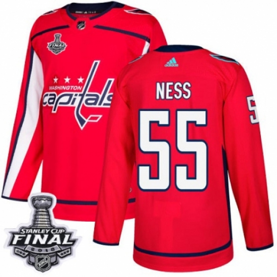 Men's Adidas Washington Capitals #55 Aaron Ness Authentic Red Home 2018 Stanley Cup Final NHL Jersey