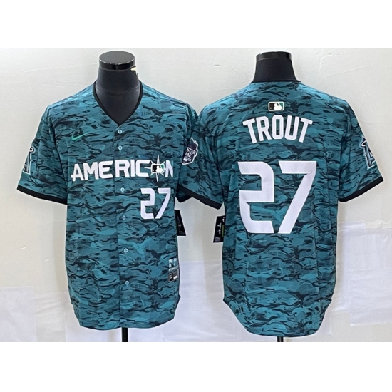 >Men's American League #27 Mike Trout Nike Teal 2023 MLB All-Star Game Limited Player Jersey
