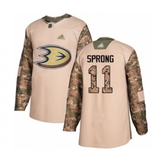 >Men's Anaheim Ducks #11 Daniel Sprong Authentic Camo Veterans Day Practice Hockey Jersey