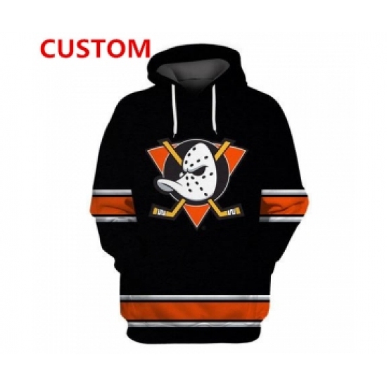 Men's Anaheim Ducks Black Custom All Stitched Hooded Sweatshirt