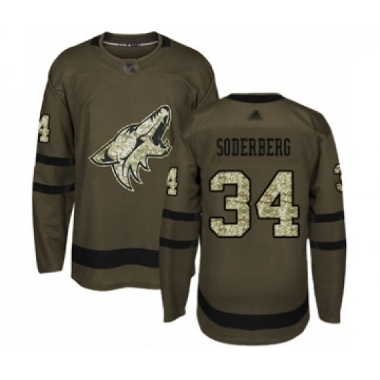 Men's Arizona Coyotes #34 Carl Soderberg Authentic Green Salute to Service Hockey Jersey
