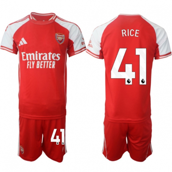 >Men's Arsenal F.C #41 Declan Rice Red 2025 Home Soccer Jersey Suit