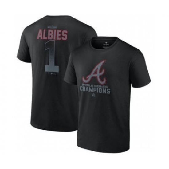 Men's Atlanta Braves #1 Ozzie Albies Black 2021 World Series Champions Name & Number T-Shirt
