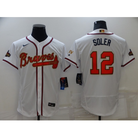 Men's Atlanta Braves #12 Jorge Soler Nike White 2022 Gold Program Authentic Player Jersey