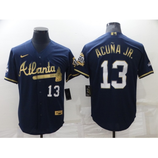 Men's Atlanta Braves #13 Ronald Acuna Jr. Navy Nike White 2022 Gold Program Authentic Player Jersey