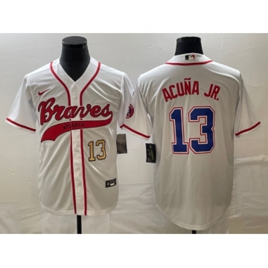 Men's Atlanta Braves #13 Ronald Acuna Jr Number White Cool Base Stitched Baseball Jersey