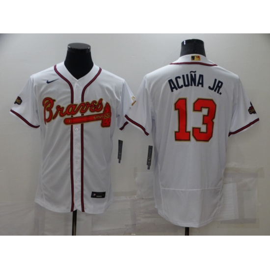 Men's Atlanta Braves #13 Ronald Acuna Jr. White 2022 Gold Program Authentic Player Jersey