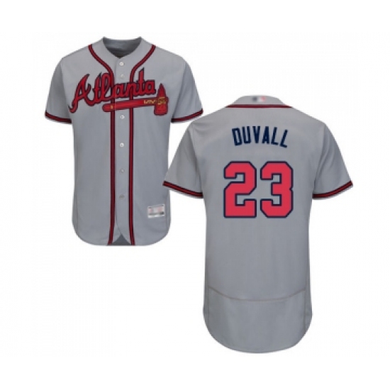 >Men's Atlanta Braves #23 Adam Duvall Grey Road Flex Base Authentic Collection Baseball Jersey