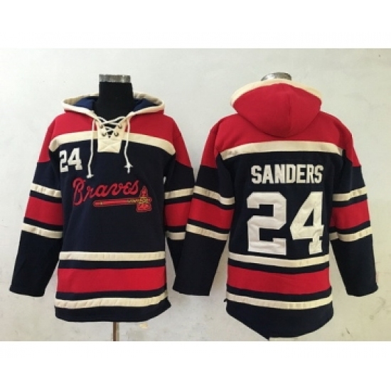 >Men's Atlanta Braves #24 Deion Sanders Retired Navy Blue Stitched MLB Baseball Hoodie