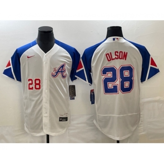Men's Atlanta Braves #28 Matt Olson White 2023 City Connect Flex Base Stitched Baseball Jersey
