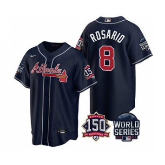 Men's Atlanta Braves #8 Eddie Rosario 2021 Navy World Series With 150th Anniversary Patch Cool Base Stitched Jersey