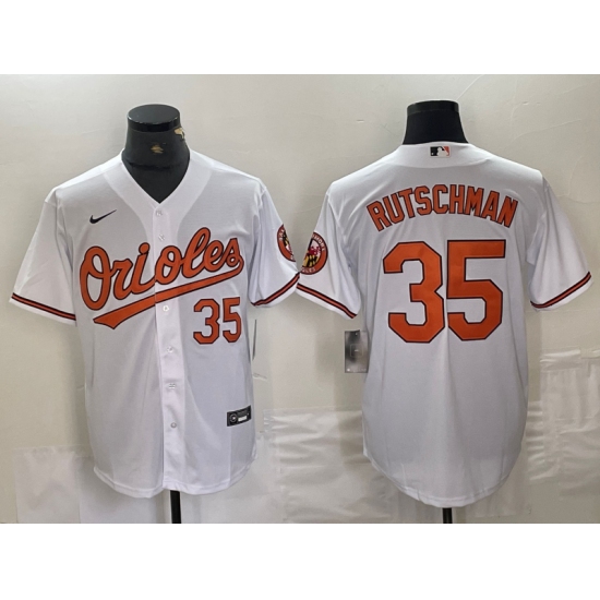 Men's Baltimore Orioles #35 Adley Rutschman Number White Stitched Cool Base Nike Jersey