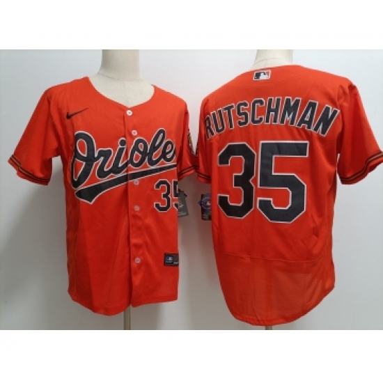 >Men's Baltimore Orioles #35 Adley Rutschman Orange Stitched Flex Base Nike Jersey