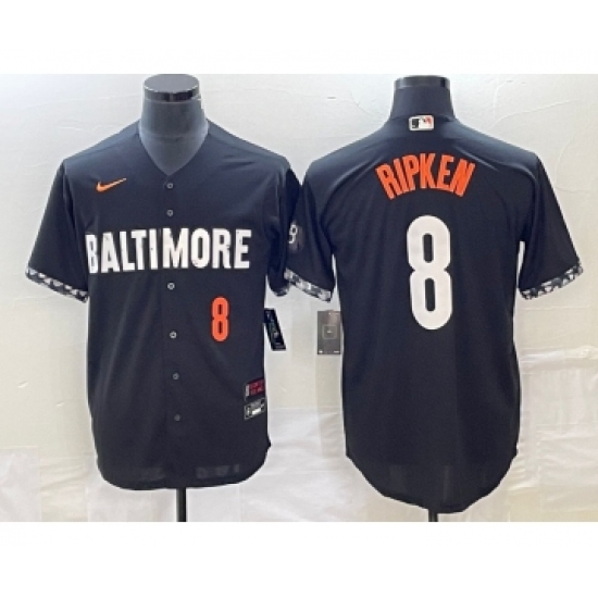 Men's Baltimore Orioles #8 Cal Ripken Jr Number Black 2023 City Connect Cool Base Stitched Jersey 2