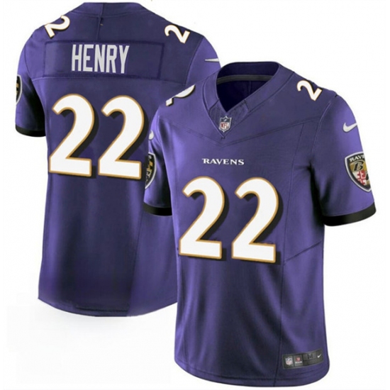Men's Baltimore Ravens #22 Derrick Henry Purple 2023 F.U.S.E. Vapor Limited Football Stitched Jersey