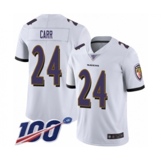 Men's Baltimore Ravens #24 Brandon Carr White Vapor Untouchable Limited Player 100th Season Football Jersey