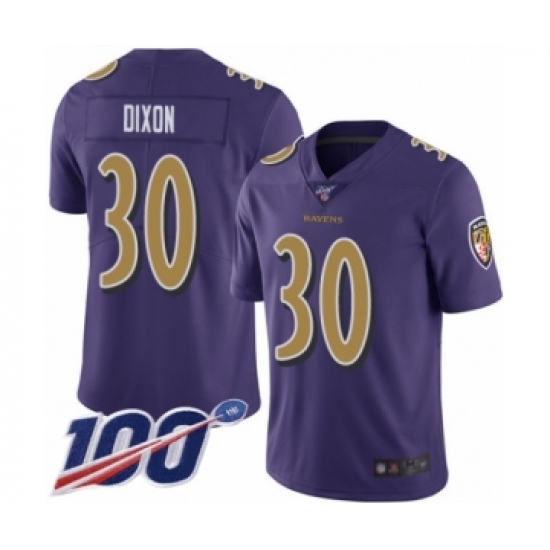 Men's Baltimore Ravens #30 Kenneth Dixon Limited Purple Rush Vapor Untouchable 100th Season Football Jersey